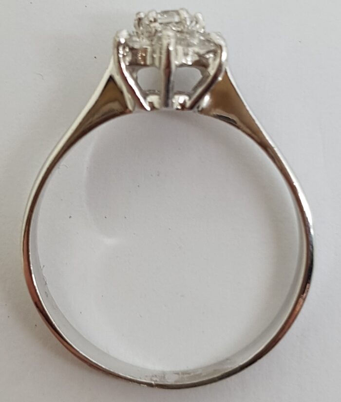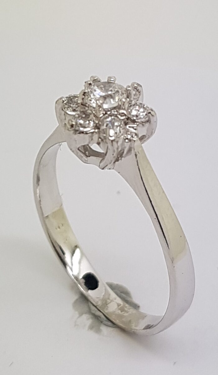 Ασημένιο δαχτυλίδι με λουλούδι στην κορυφή και διαμαντάκι στην μέση του λουλουδιού.