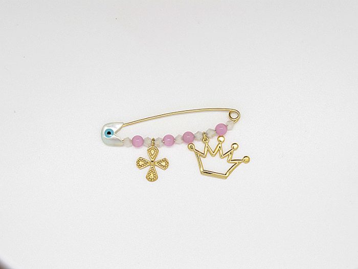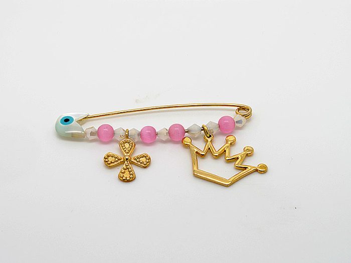 Καρφίτσα για κοριτσάκι με υπέροχη κορώνα και σταυρουδάκι.