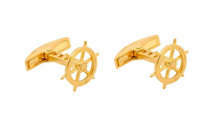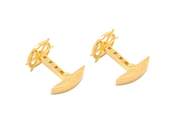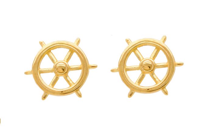 Μανικετόκουμπα τιμόνι σε κίτρινο χρώμα. Διαστάσεις 1,5 εκατοστά μήκος και 1,5 εκατοστά ύψος.