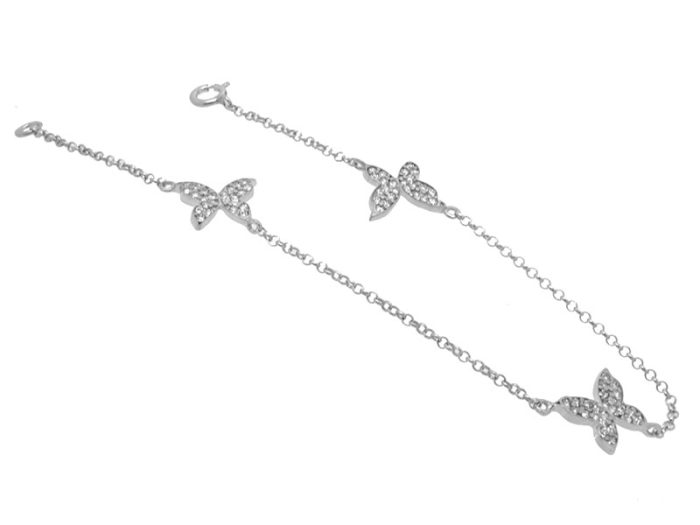 Βραχιόλι λευκό με πεταλούδες από άσπρες πέτρες