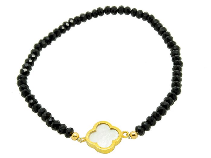 Βραχιόλι με μάυρες ορυκτές πέτρες και κίτρινο σταυρουδάκι από φίλντισι